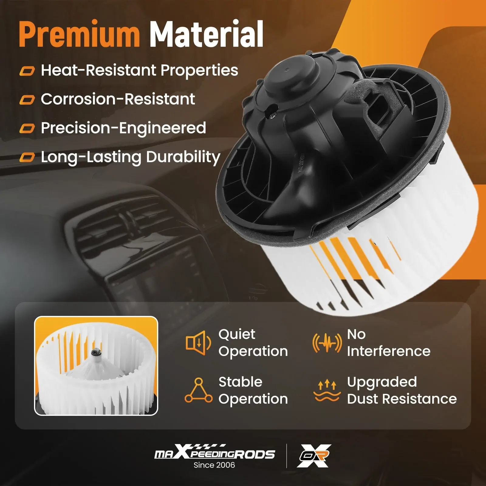 [Performance]: Crafted to deliver premium performance, this heater blower motor is built with a high-grade silicon steel rotor and precision-balanced fan wheel for quiet, stable airflow. The sealed housing design helps block dust and debris, enhancing efficiency and reliability over time. Rigorously tested to meet or exceed OEM standards, it ensures smooth operation at every speed. A dependable, high-quality upgrade for maintaining optimal cabin comfort in all driving conditions.