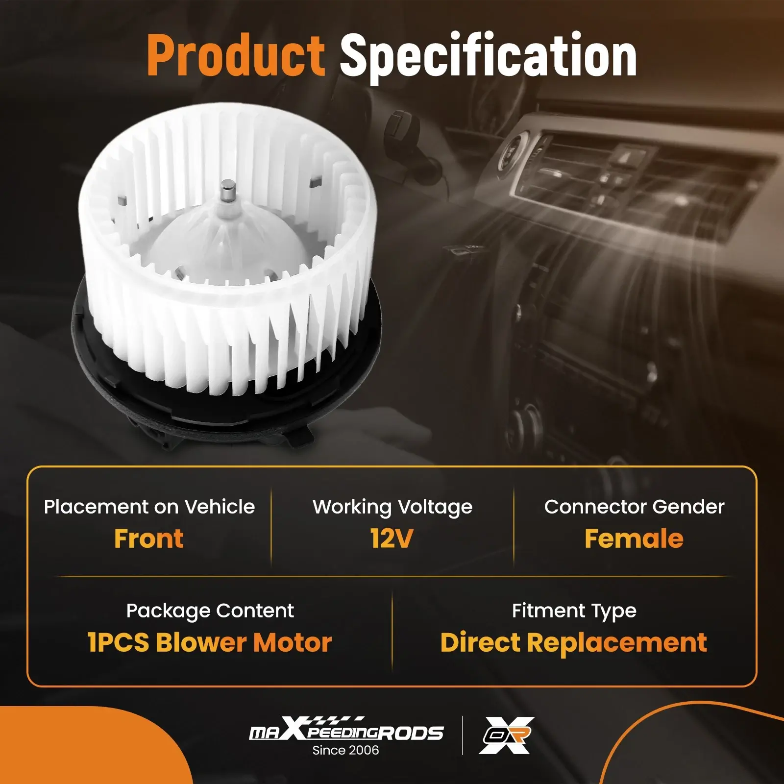 [Performance]: Crafted to deliver premium performance, this heater blower motor is built with a high-grade silicon steel rotor and precision-balanced fan wheel for quiet, stable airflow. The sealed housing design helps block dust and debris, enhancing efficiency and reliability over time. Rigorously tested to meet or exceed OEM standards, it ensures smooth operation at every speed. A dependable, high-quality upgrade for maintaining optimal cabin comfort in all driving conditions.