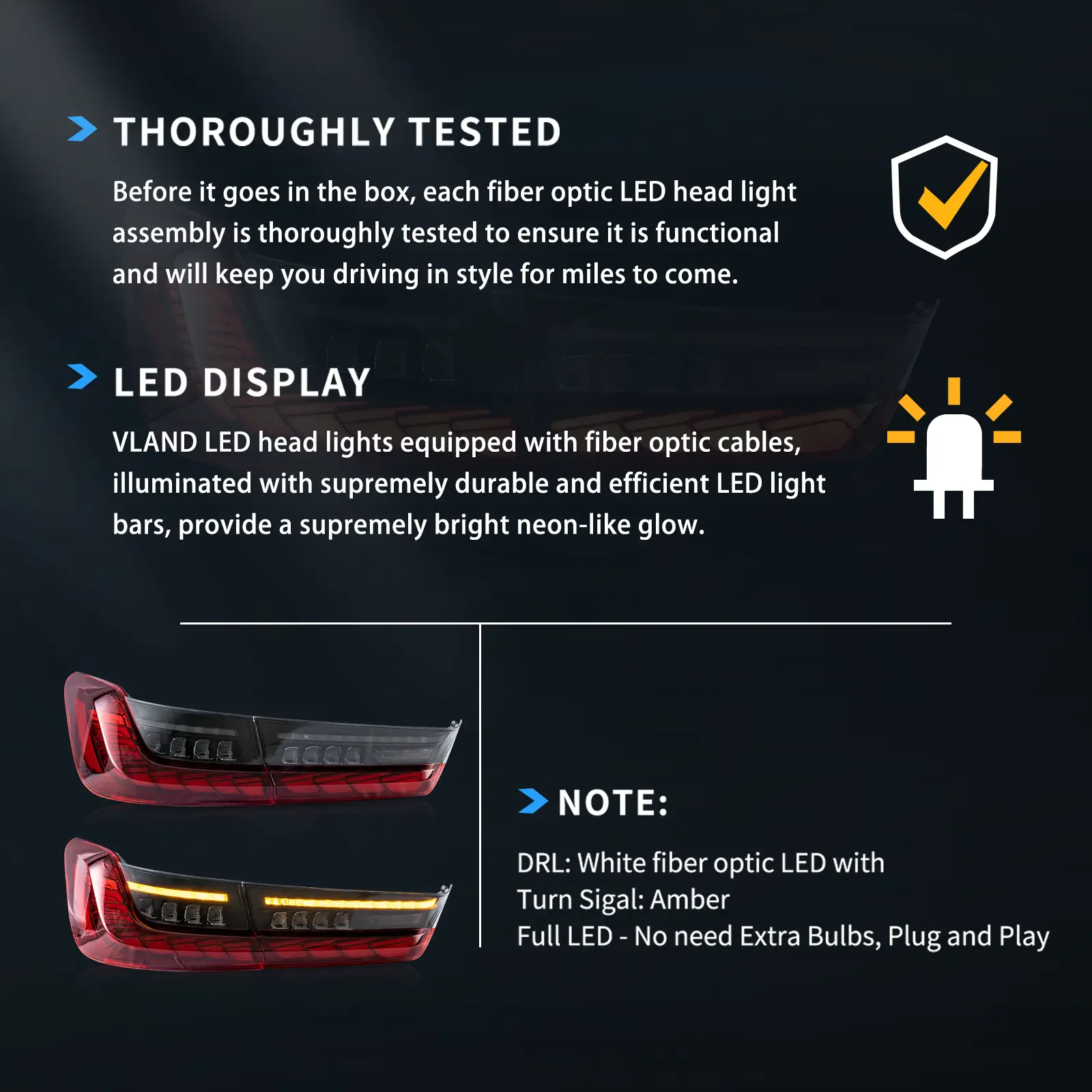VLand specializes in high-performance automotive lighting solutions, offering DOT/SAE-certified LED headlight and taillight assemblies designed for seamless plug-and-play installation.